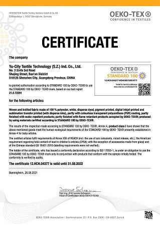 OEKO-TEX Certified in 2021(CN)